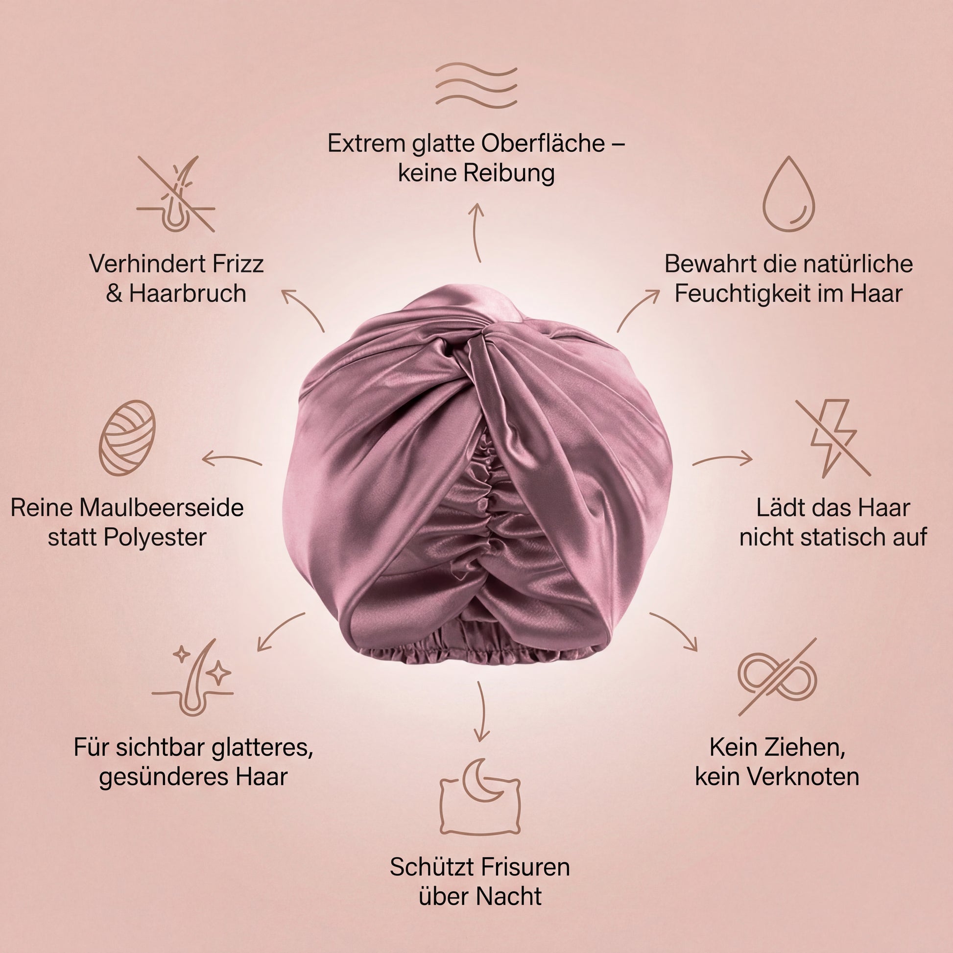 Dein Haar bleibt glatt, ruhig und geschützt – die ganze Nacht.