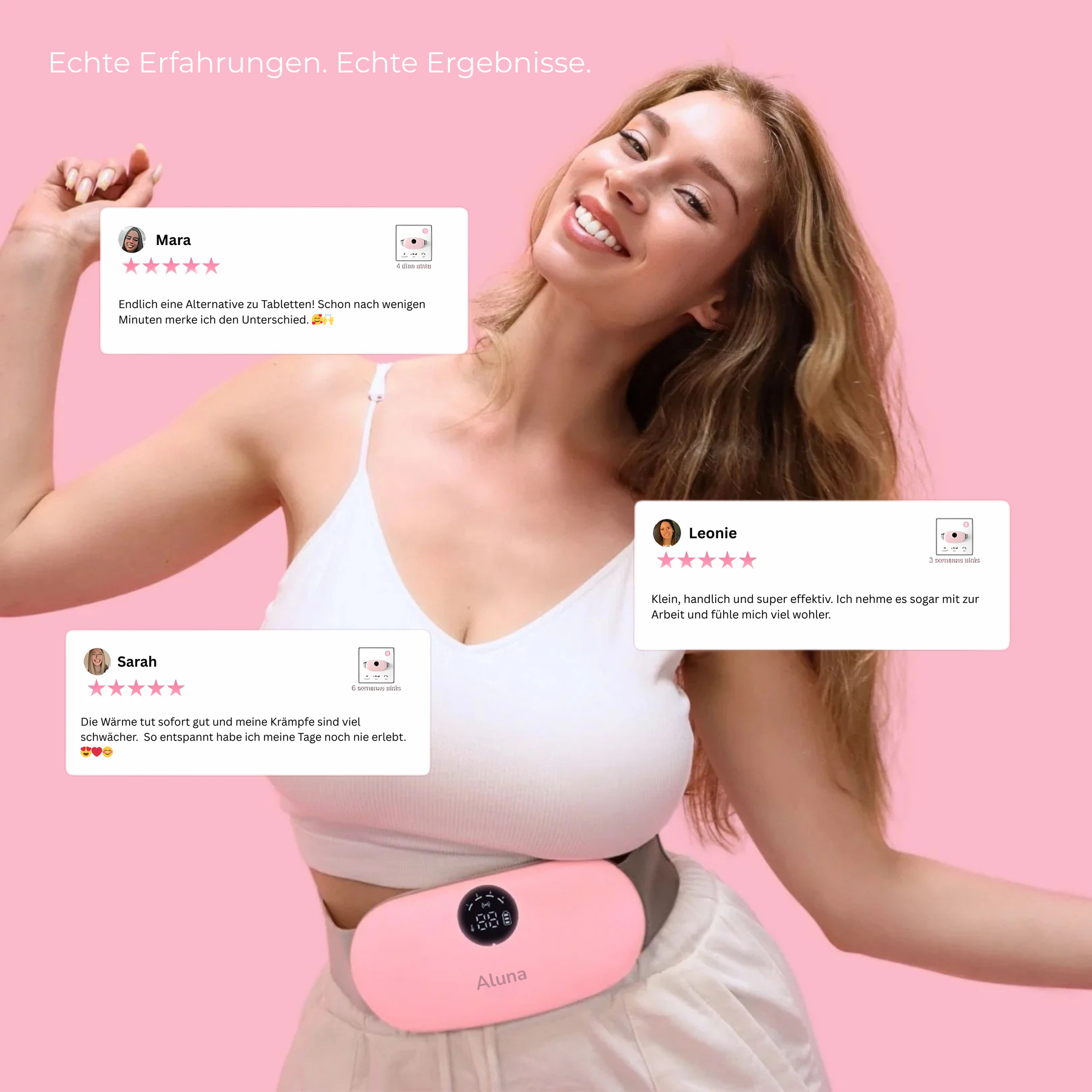 Ob in der Arbeit, beim Entspannen oder unterwegs – Aluna begleitet dich durch die Tage, an denen du dich am meisten nach Ruhe sehnst. Wärme und Vibration lösen Krämpfe, beruhigen und schenken dir Geborgenheit, genau dann, wenn du sie brauchst.