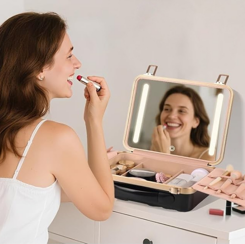 Kompakt, robust und akkubetrieben – dein mobiler Schminktisch im Koffer.