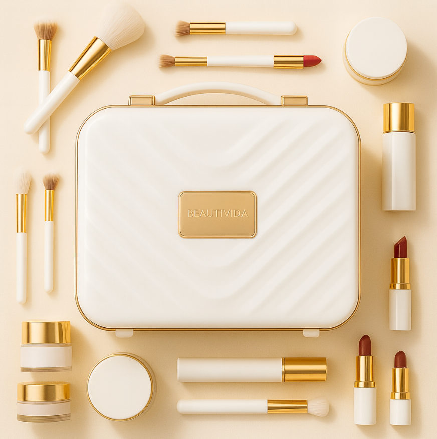 Ob auf Reisen, im Büro oder zuhause – mit Beautivida hast du deine gesamte Beauty-Routine stilvoll organisiert und jederzeit griffbereit. Kein Chaos, kein Stress – nur perfekte Vorbereitung für jeden Moment.